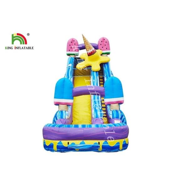 Colorful Ice Cream Inflatable Water Slide Singal Lane PVC Slide With Swimming Pool